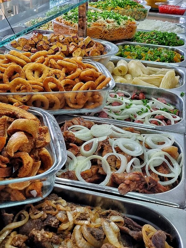 Desfrute do nosso buffet variado que inclui deliciosa comida caseira e ótima sobremesa. Temos opções para todos os gostos, garantindo uma refeição completa e saborosa.